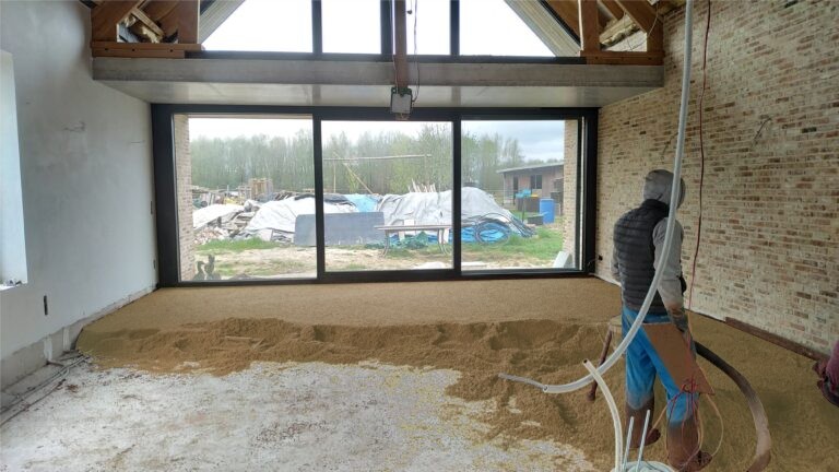 Met vloerisolatie van gerecycleerd piepschuim en weinig water en cement kies je voor een milieuvriendelijke oplossing die je vloer snel en efficiënt vult en vlot klaar maakt voor verdere werken.